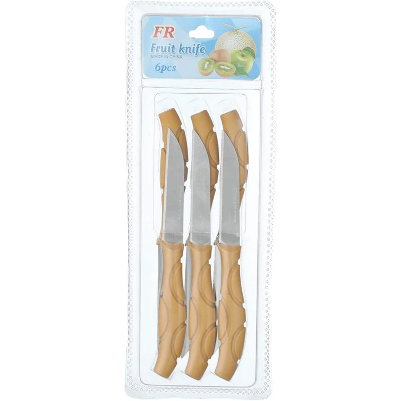 طقم سكاكين الفاكهة مصنوع من فولاذ مقاوم للصدأ وبلاستيك عالي الجودة لضمان استخدام يدوم طويلاً.