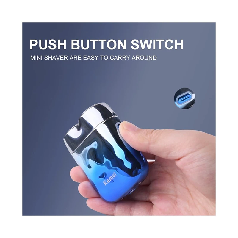 ماكينة الحلاقة الصغيرة للرجال من KEMEI – للحلاقة الجافة والمبللة، كهربائية وقابلة لإعادة الشحن، مقاومة للماء بتقنية IPX7، تصميم أنيق باللون الأزرق البحري العميق