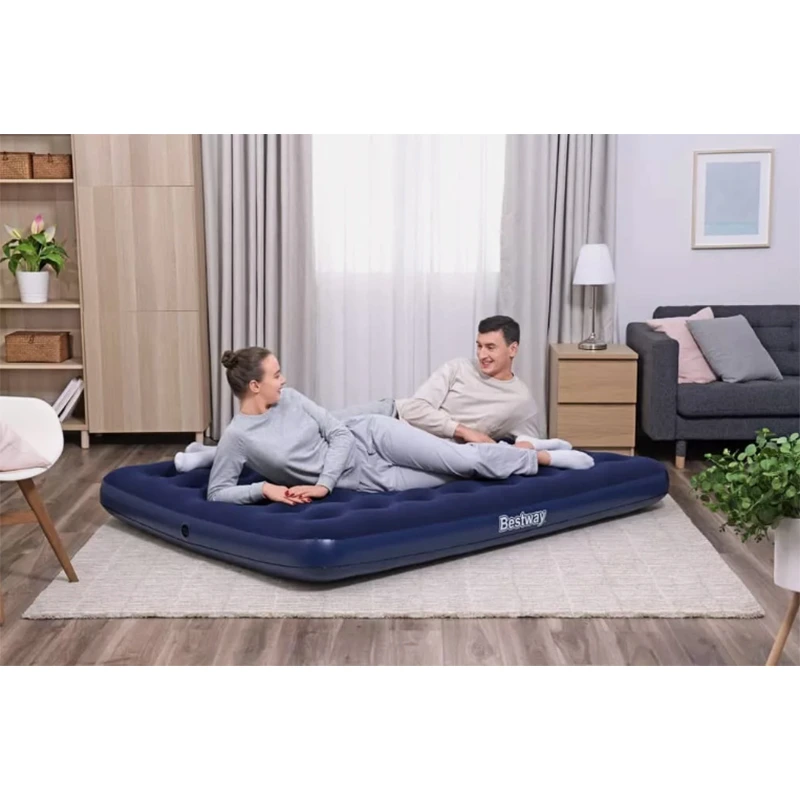 مرتبة هوائية بحجم كوين مصنوعة من الفينيل المتين لتوفير راحة تدوم طويلاً. تتميز بتصميم تقليدي للحزم الحلزونية الذي يوفر دعماً وراحة فائقة أثناء النوم. سهلة النفخ والتفريغ، مما يجعلها خيارًا مثاليًا للاستخدام في المنزل أو أثناء التخييم.