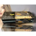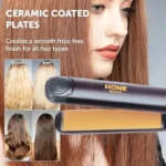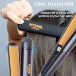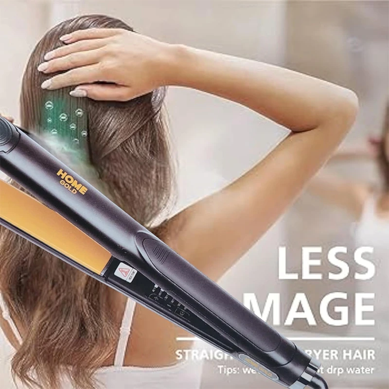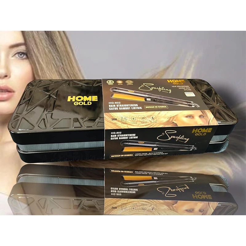 مكواة شعر احترافية من هوم جولد بتصميم كوري، علبة معدنية، ألواح مطلية بالسيراميك تحمي الشعر من الحرارة الزائدة، توزيع جيد للحرارة، درجات حرارة مناسبة لجميع أنواع الشعر، أكثر من ١٠ خيارات لدرجة الحرارة، قوة ٥٠ واط