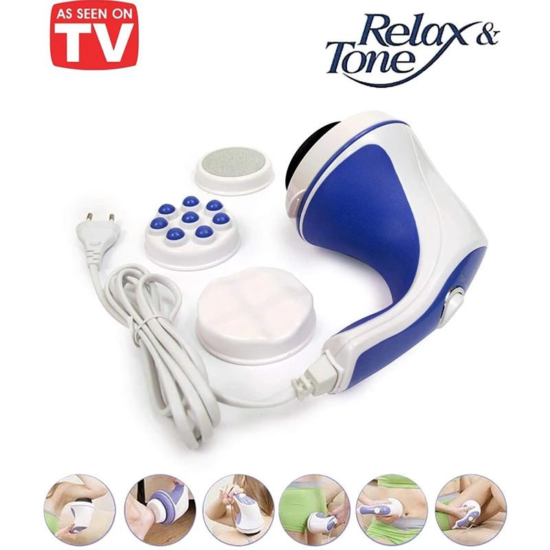 صُمم جهاز تدليك ريلاكس آند سبين تون المحمول لتنحيف الجسم بالكامل لتنحيف الجسم، وتنحيفه، واسترخاء العضلات. تصميمه المريح والمريح يُسهّل استهداف مناطق محددة مثل الذراعين والفخذين والخصر. يستخدم جهاز التدليك الاهتزازات لتحسين الدورة الدموية وتفتيت الخلايا الدهنية، مع توفير تدليك مريح لاسترخاء العضلات. يأتي الجهاز مزودًا بملحقات متعددة، مما يجعله متعدد الاستخدامات لتلبية احتياجات التدليك المختلفة. هذا المنتج مثالي لمن يبحثون عن حل منزلي مريح لتنحيف الجسم والاسترخاء.