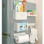 The 5-in-1 Magnetic Magpie Combination Storage Rack Set is a multifunctional solution designed for your refrigerator. This set features magnetic attachments that easily stick to your fridge, providing convenient storage for kitchen essentials. With multiple compartments, it’s perfect for organizing spices, utensils, paper towels, and more, keeping your kitchen clutter-free.