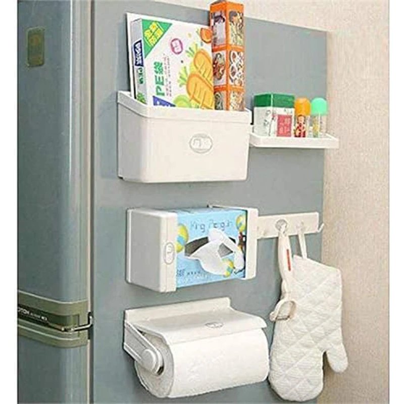 5-In-1 Magnetic Magpie Combination Storage Rack Set For Refrigerator, Multifunctional Fridge Magnet, White