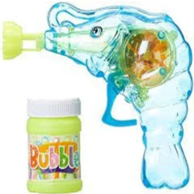 A fun and vibrant bubble gun toy with LED lights, perfect for creating a playful atmosphere and entertaining kids with bubbles and glowing effects.