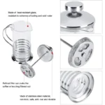 Made of Reliable Material: Glass that is too thin or cheaply made would let out the heat almost instantly, which would affect the taste of your coffee. However, is made of heat-resistant borosilicate glass which keeps the water hot during the brewing process. Also, the thickened glass bottom tremendously extends the product service life and handle is secured.