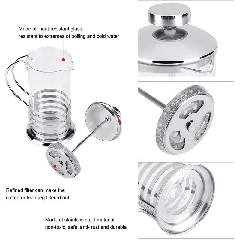 Type: Stainless Steel French Press Coffee Maker and Teapot Plunger for Making Coffee and Tea Better Sharing a Gourmet Coffee 350ML/12oz/1 Cup