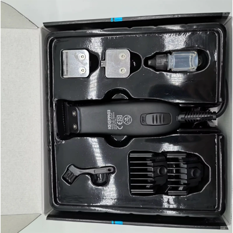 Compact in size and balanced in weight. Mains type machine, the power source is a conventional network with a voltage of 220 in. For convenience and practicality, the machine of the IGemei gm840 3in1 series is equipped with two nozzles: one is designed for trimming hair in sizes from 1 to 3mm, and the second is for 8 – 12mm. Among other things, in the package you will find a technical oil for lubrication and a small brush for cleaning hair residues from the edges of knives and nozzles that remain after cutting.