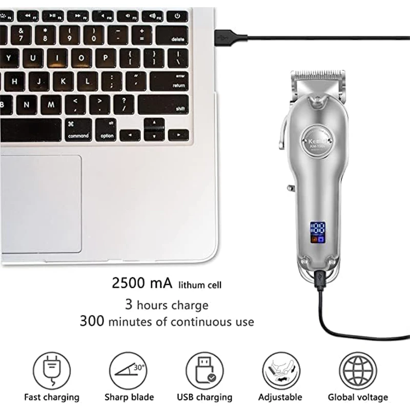 The LED display of this clipper clearly shows remaining percentage of battery. This professional hair clipper for men is very comfortable to hold, easy to use, and clean even for first-time users