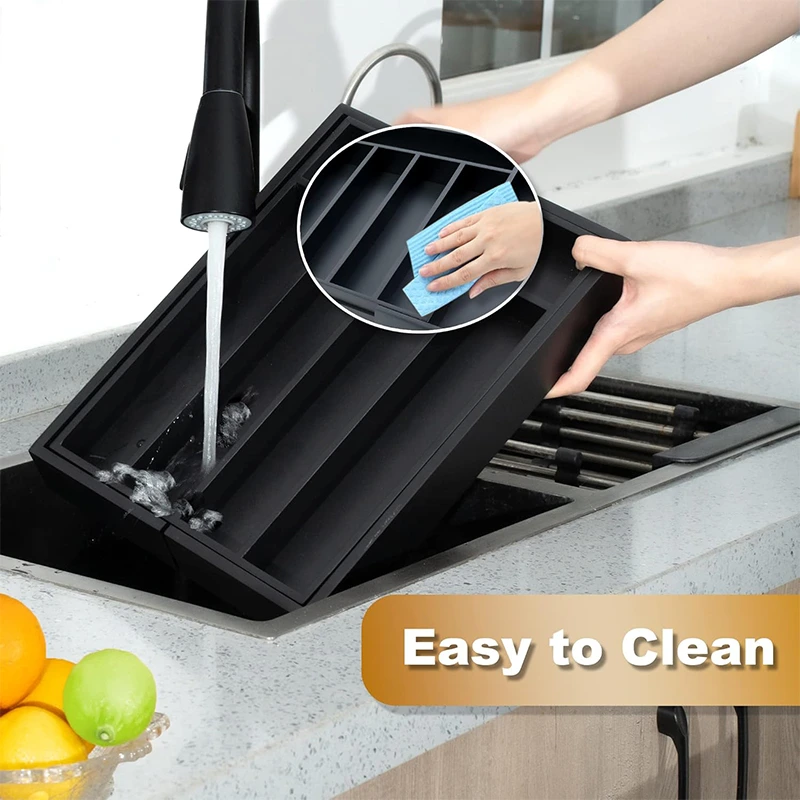 Easy to clean and maintain: This flatware organizer is made from natural bamboo that has grown for more than 4 years. Bamboo is an exceptional resource that is sustainable, highly durable, and easy to clean. Every adjustable drawer organizer is handmade by senior craftsmen to ensure a smooth surface without burrs. Finely polished on all surfaces and gentle for cutlery and utensils. You can safely let your family or children use our silverware organizer.