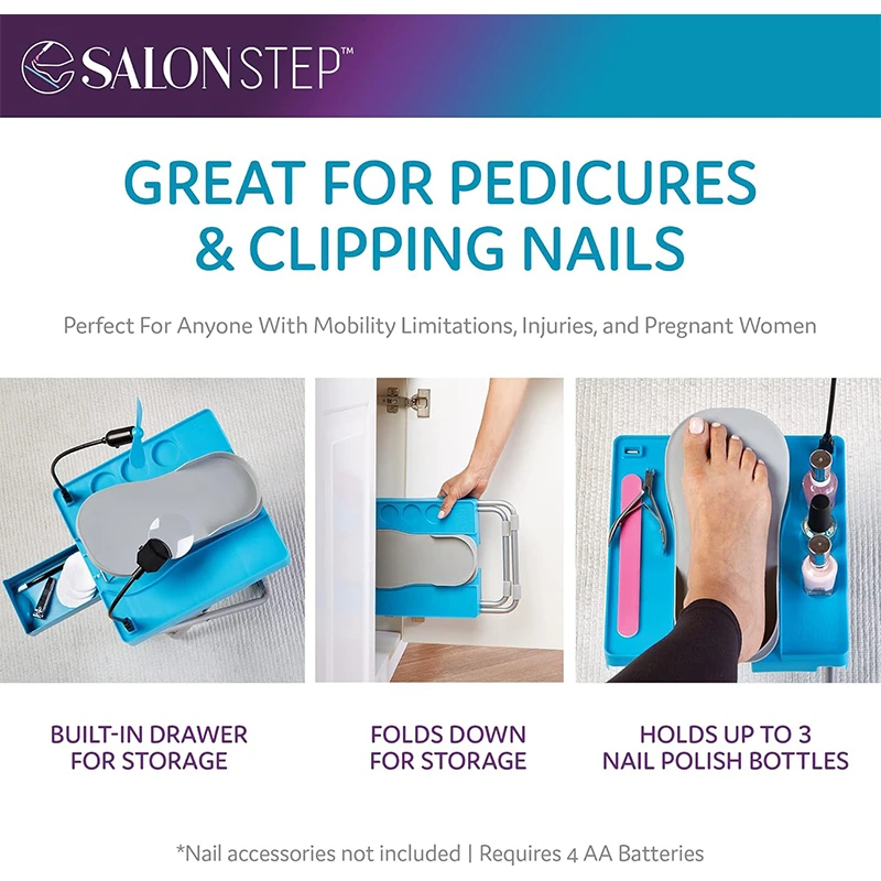 Type: Salon Step The Beauty Footrest for Easy at-Home Pedicures, Treat Your Feet, No More Bending or Stretching with LED Magnifier, Drying Fan, Adjustable Foot Rest, Non-Slip Sturdy Legs & Built-in Storage