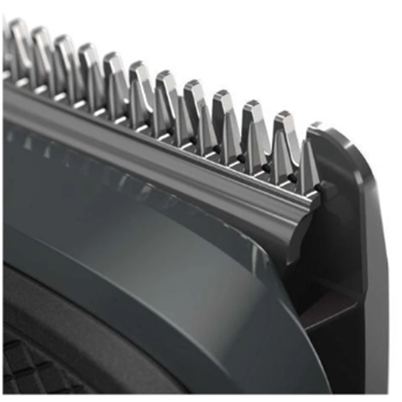 7 click-on combs for face, hair and body – 1 beard adjustable comb (3-7mm), 2 stubble combs (1,2 mm), 3 hair combs, and 1 body comb.